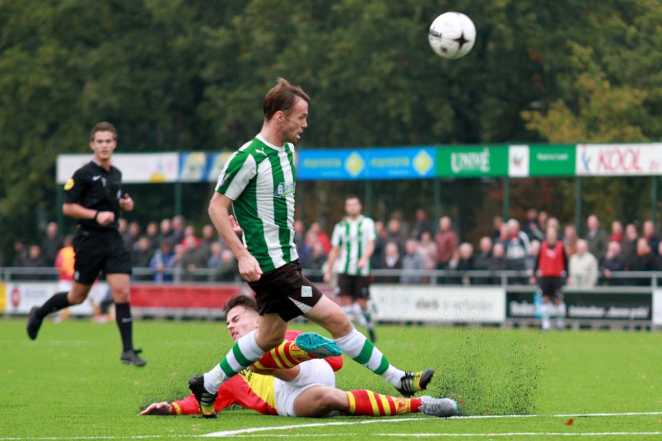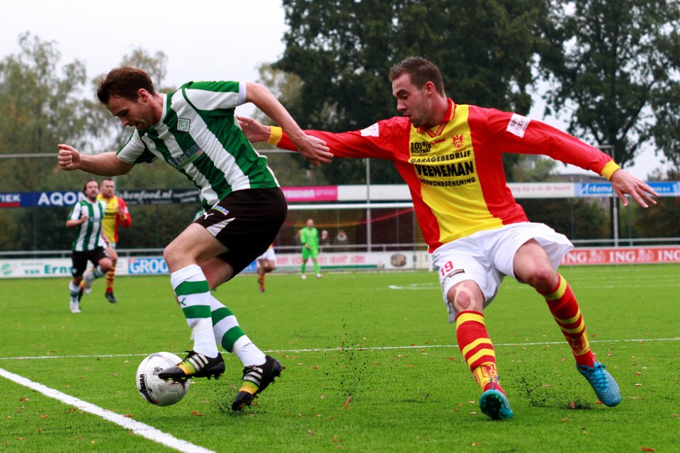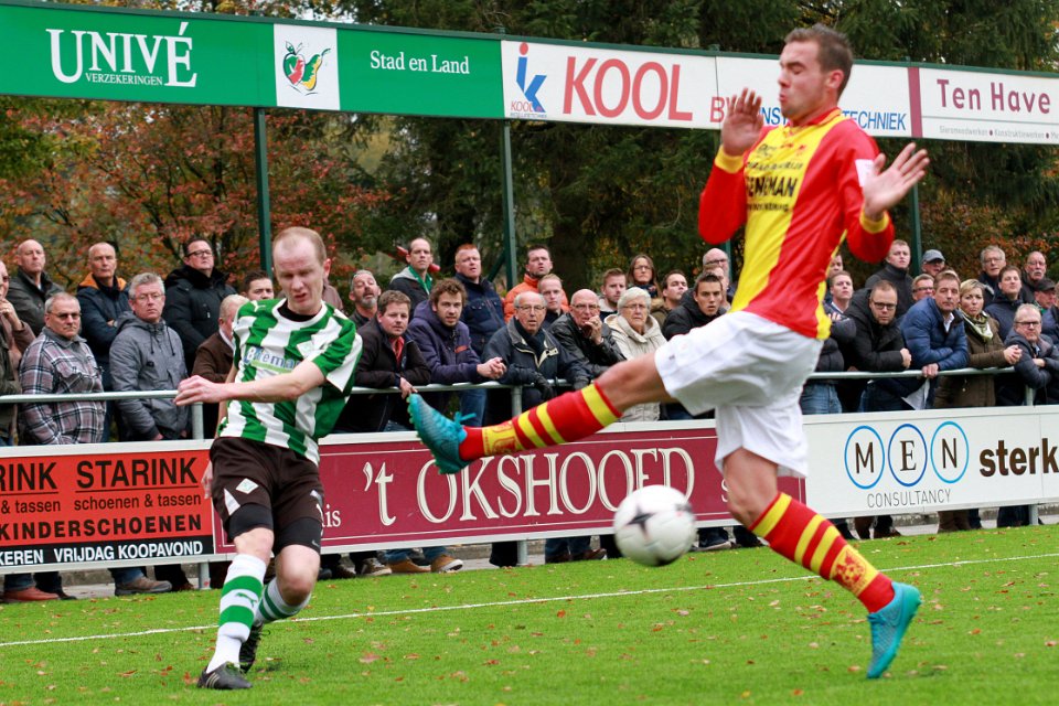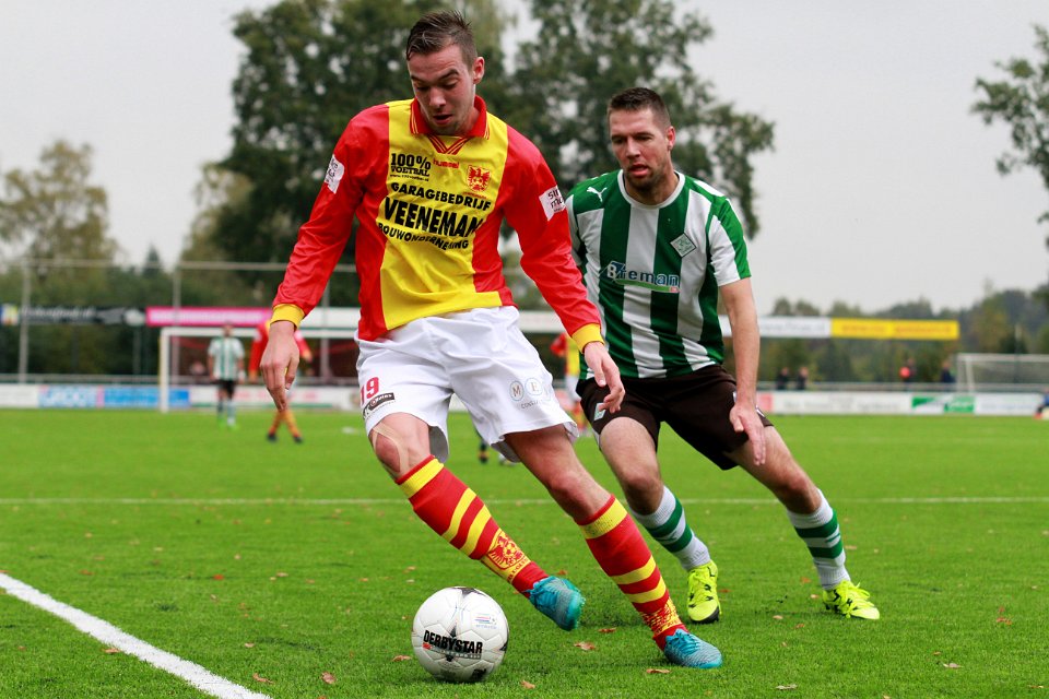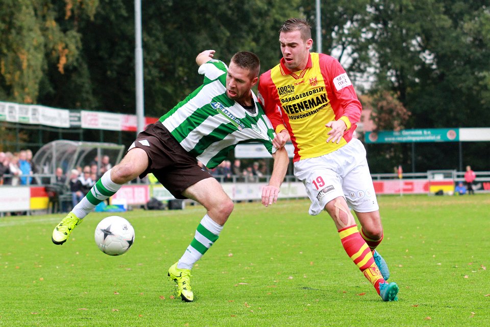 14 17-10-2015: Voetbal: CSV Apeldoorn v SC Genemuiden: Apeldoorn/Joost Krijns (l) of CSV Apeldoorn (l), Jacco Riemens (r) of Genemuiden/Hoofdklasse C