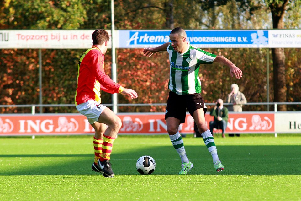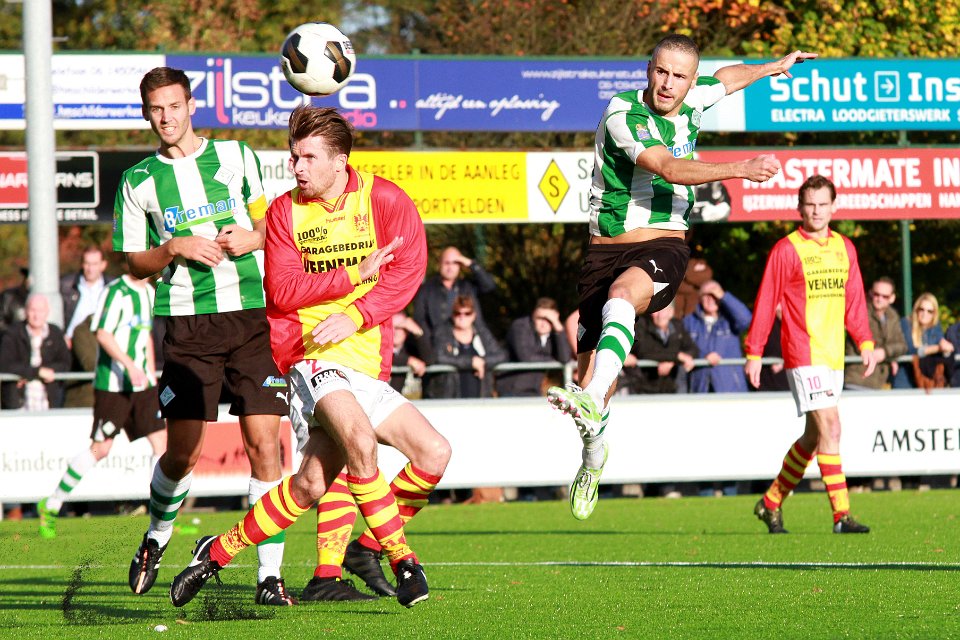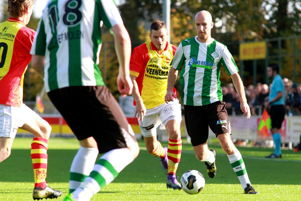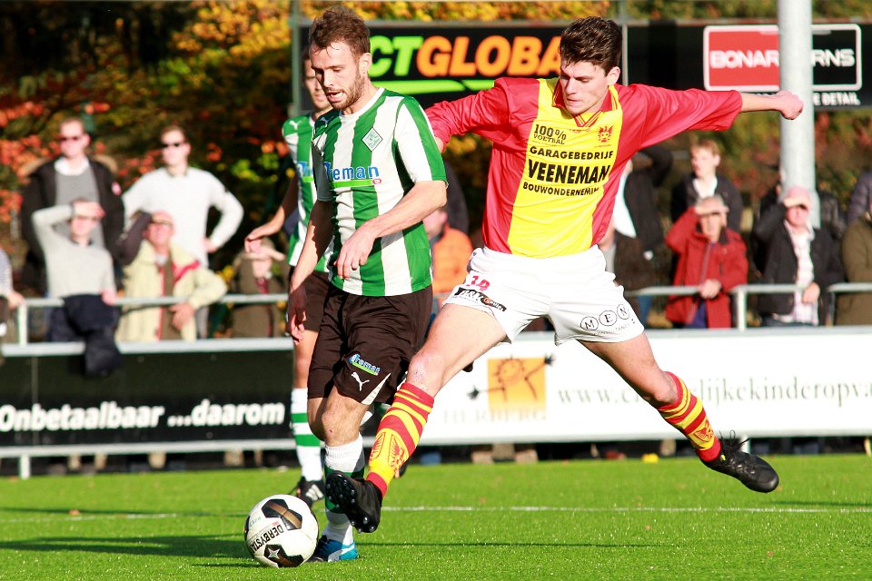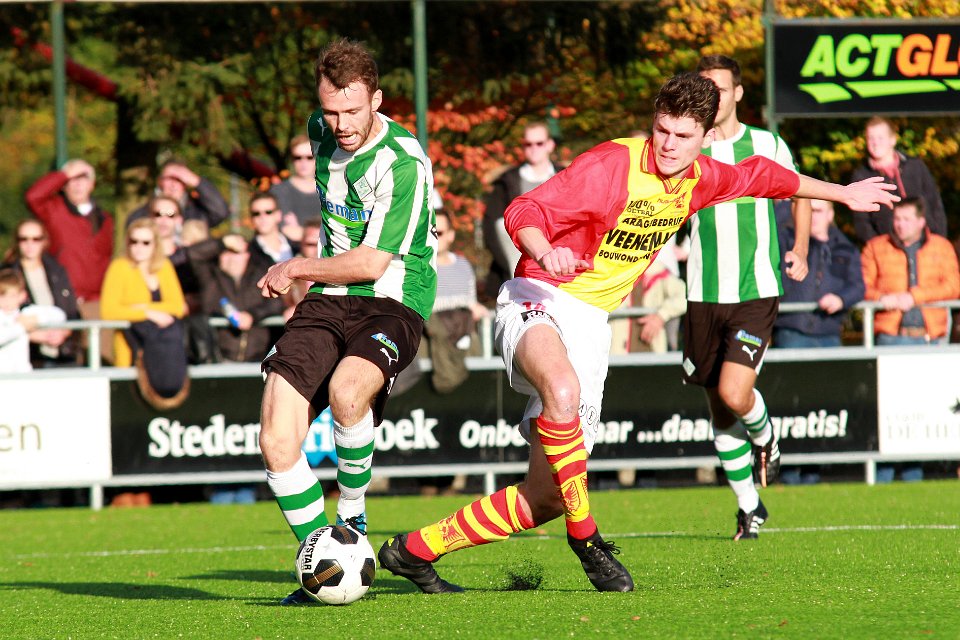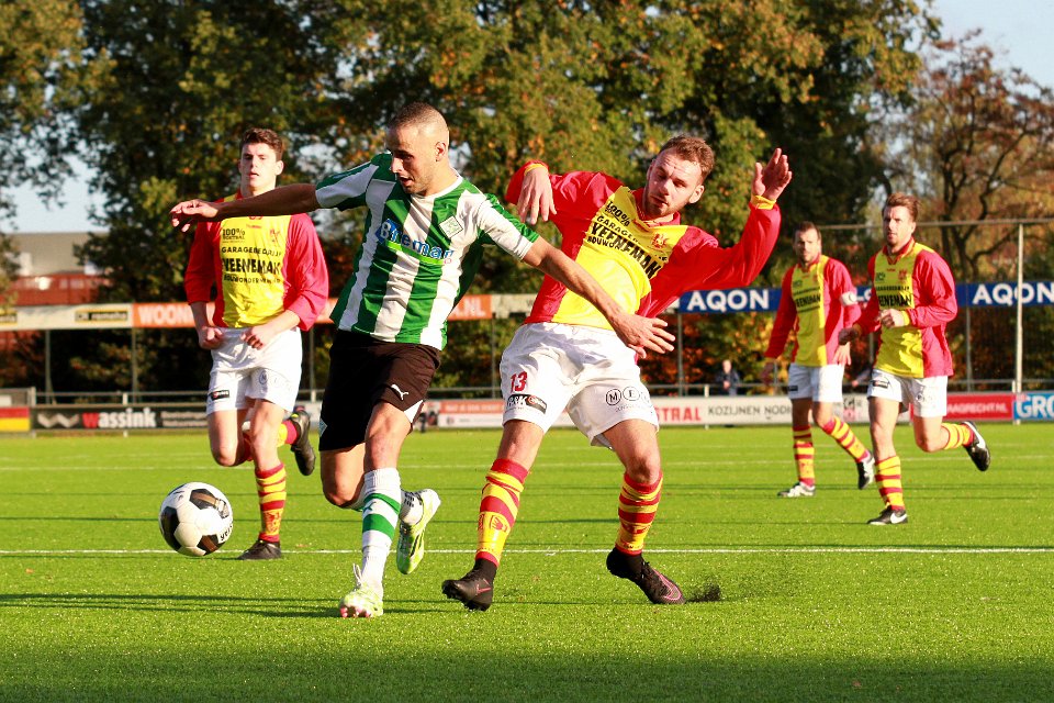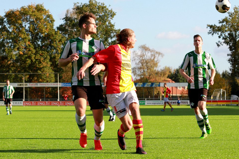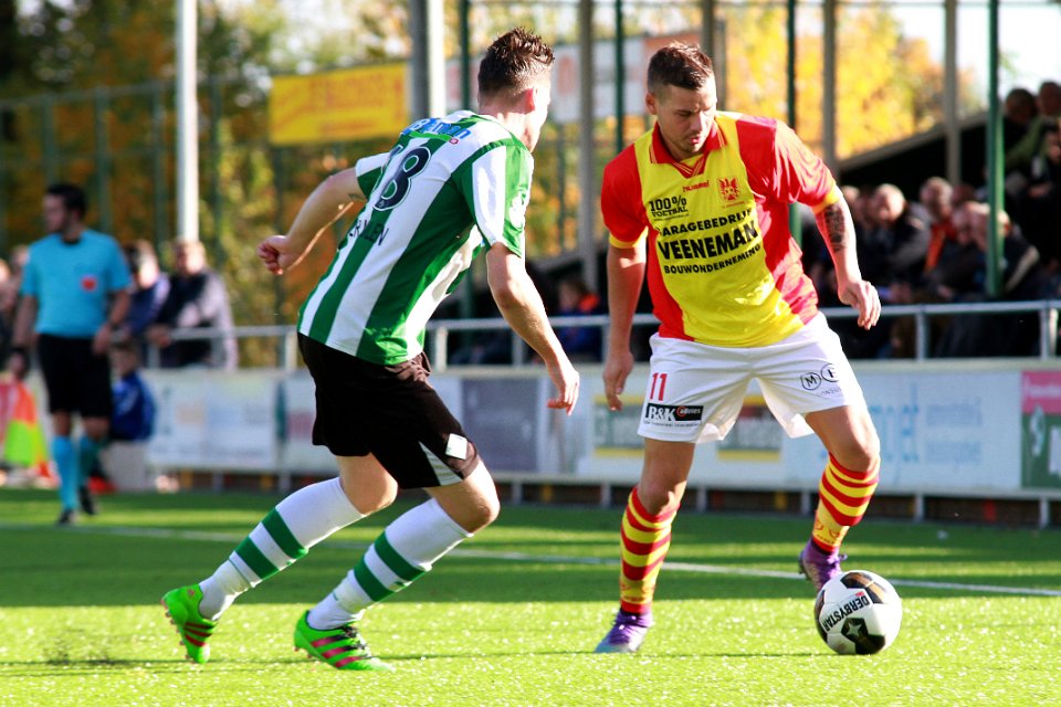 6 29-10-2016: Voetbal: CSV Apeldoorn v SC Genemuiden: Apeldoorn / Wouter van der Meulen (l) of Genemuiden, Rob Diderik (r) of CSV Apeldoorn /