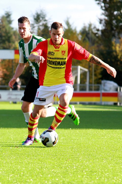 8 29-10-2016: Voetbal: CSV Apeldoorn v SC Genemuiden: Apeldoorn / Wouter van der Meulen (l) of Genemuiden, Rob Diderik (r) of CSV Apeldoorn /