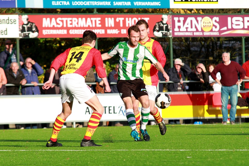 10 29-10-2016: Voetbal: CSV Apeldoorn v SC Genemuiden: Apeldoorn / Robert Boes (l), Dirk Muis (m) of Genemuiden, Richard van Schooten (r) of CSV Apeldoorn /