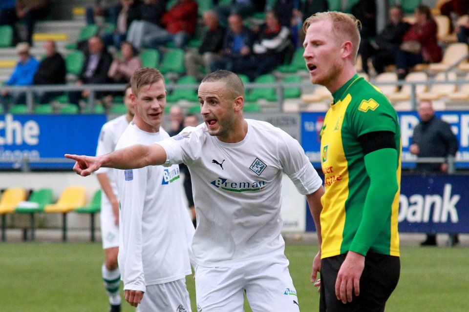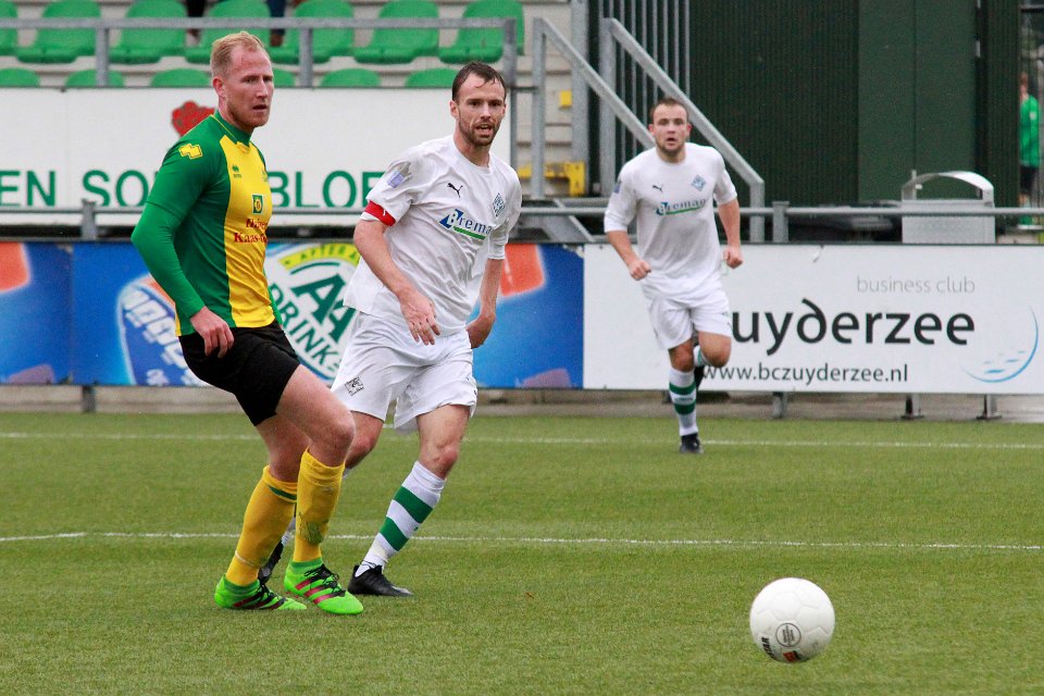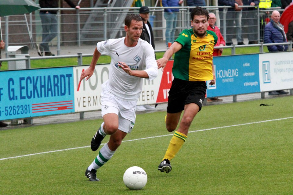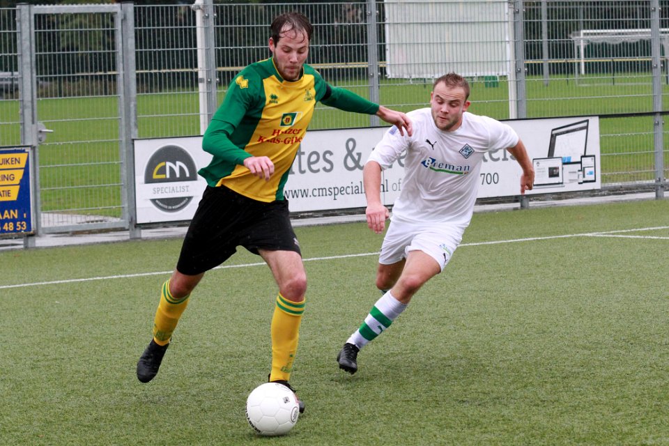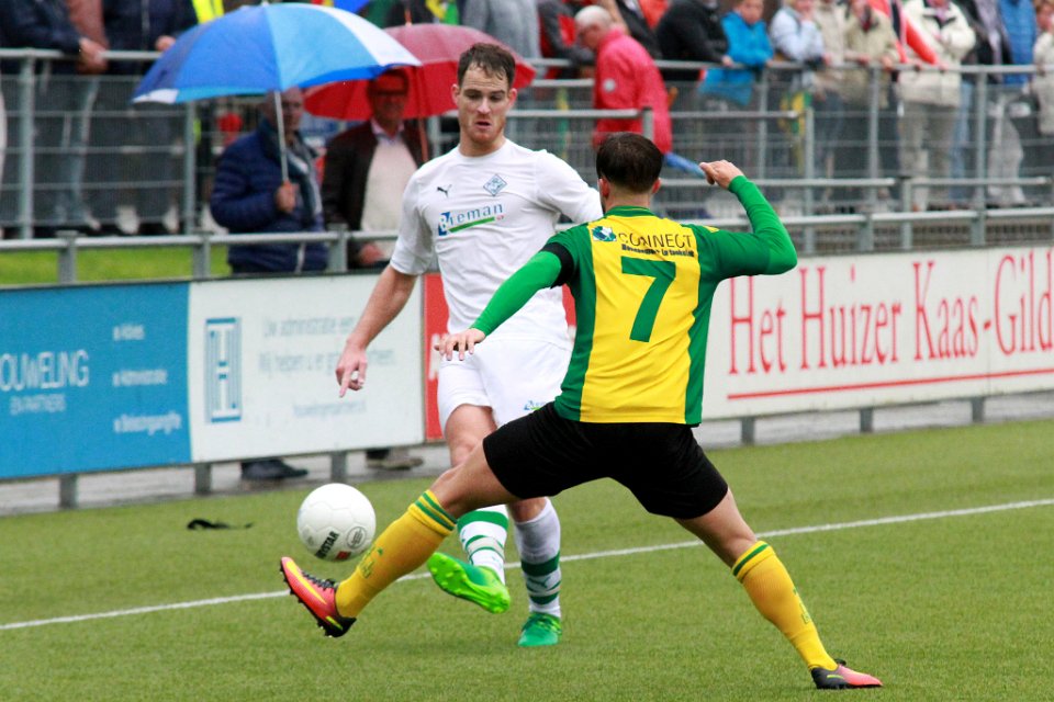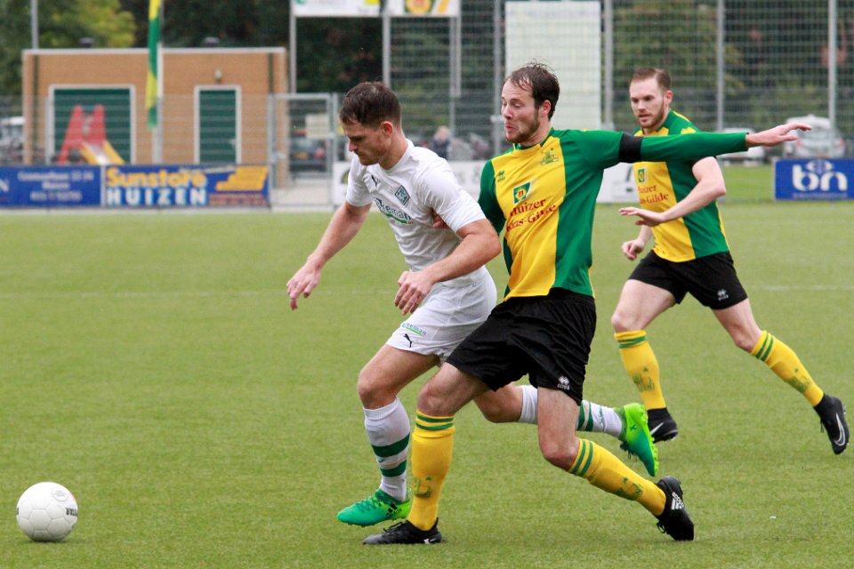 6 30-09-2017: Voetbal: Huizen SC Genemuiden: Huizen/Dirk Muis (l) of Genemuiden, Desmond Mensen (r) of Huizen/ |