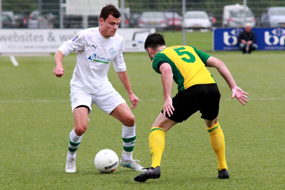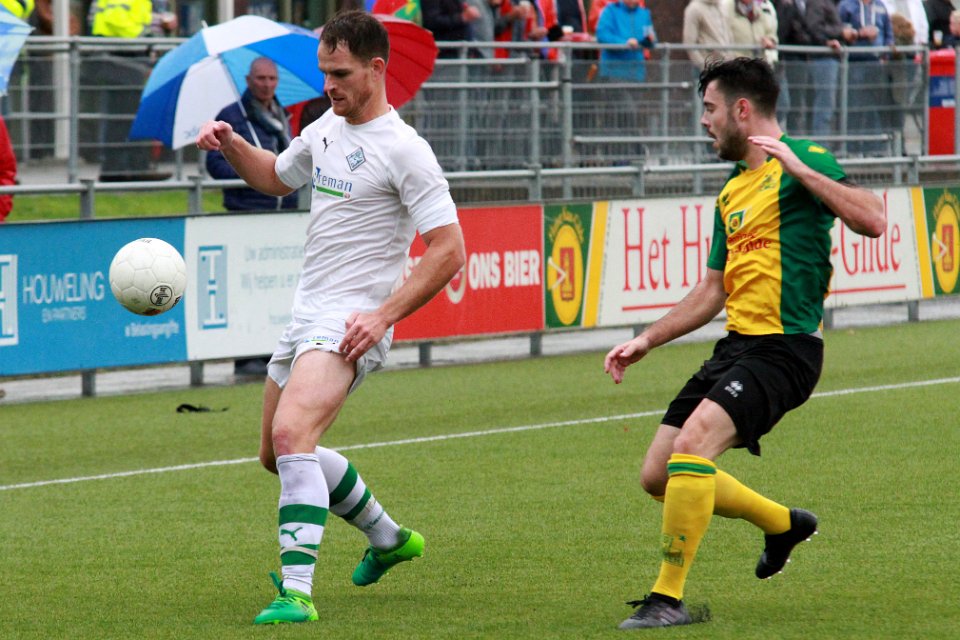 12 30-09-2017: Voetbal: Huizen SC Genemuiden: Huizen/Danny Menting (l) of Genemuiden, Lukas Pelgrum (r) of Huizen/ |
