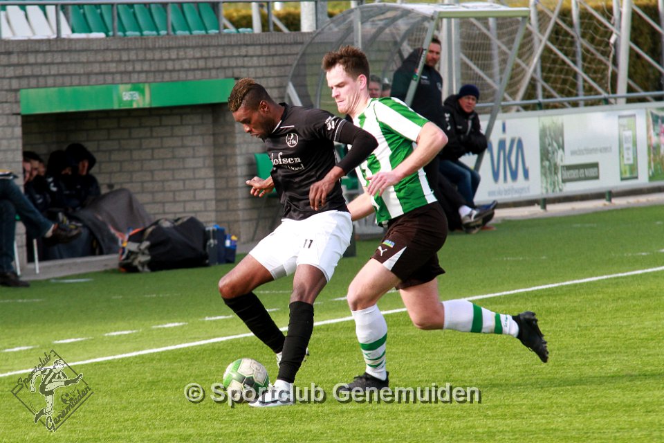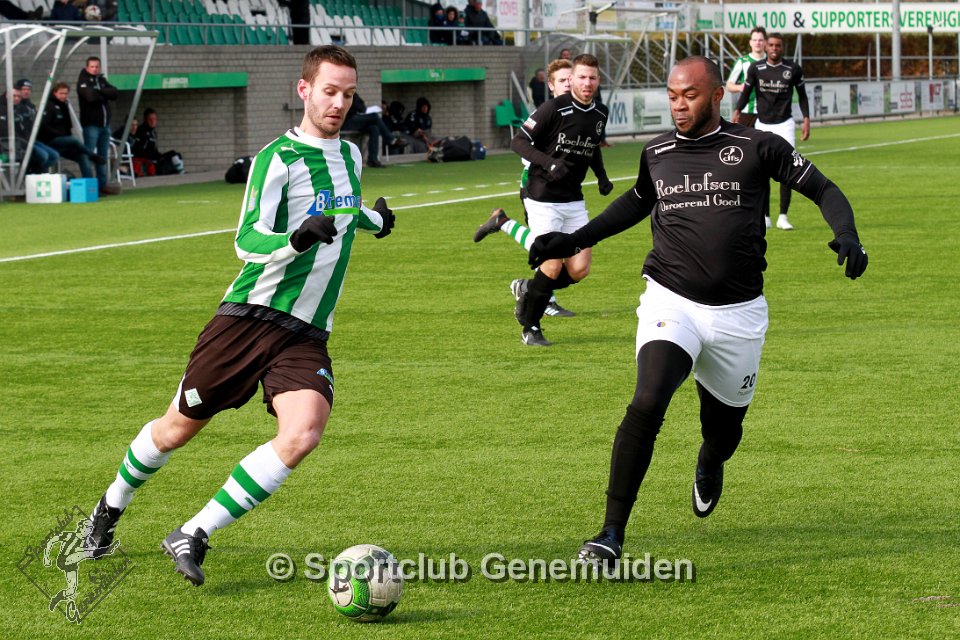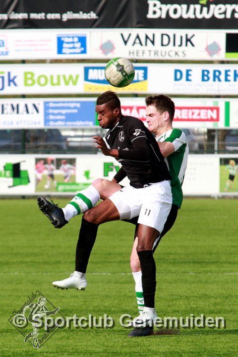 6 17-03-2018: Voetbal: SC Genemuiden v DFS: Genemuiden/Noe Bokila (l) of DFS, Dirk Muis (r) of Genemuiden/ |