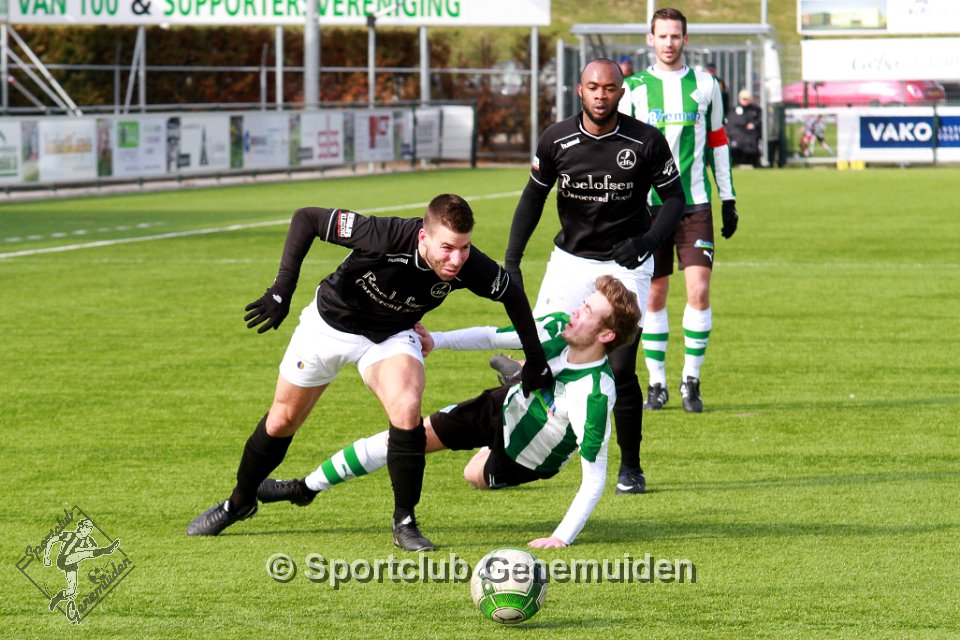 7 17-03-2018: Voetbal: SC Genemuiden v DFS: Genemuiden/Noe Bokila (l) of DFS, Anne van der Kolk (m) of Genemuiden, Lorenzo Davids (r) of DFS/ |