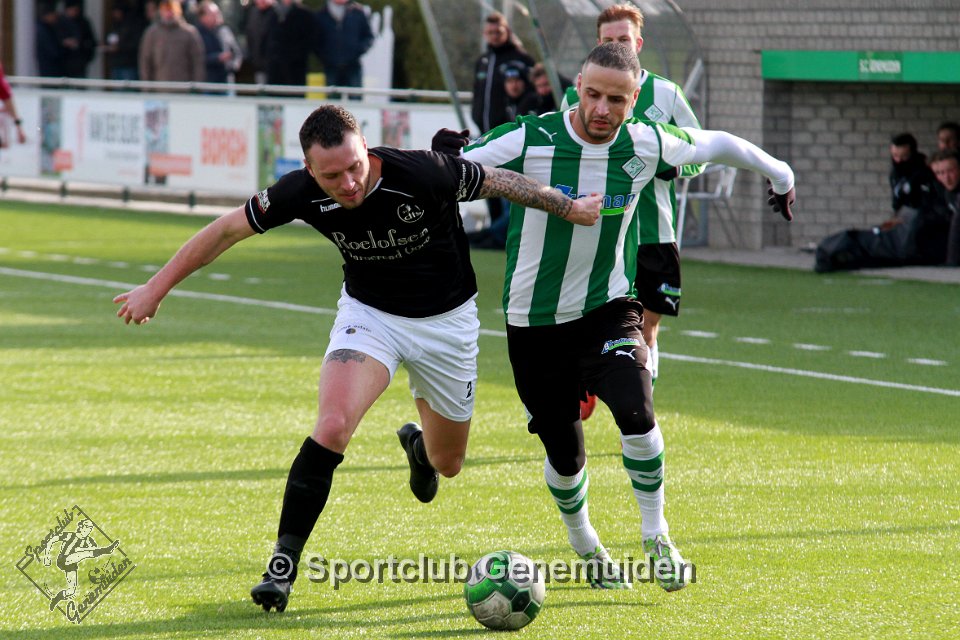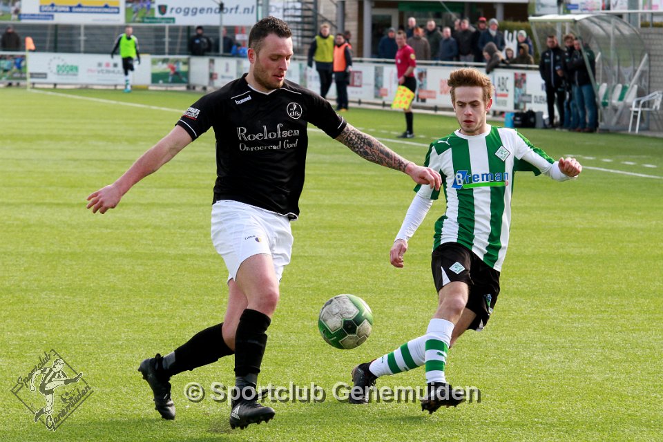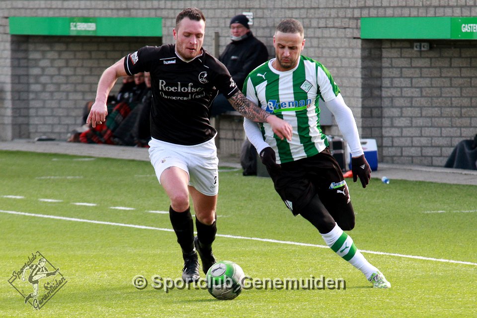 34 17-03-2018: Voetbal: SC Genemuiden v DFS: Genemuiden/Rick van Walsem (l) of DFS, Arjen Hagenauw (r) of Genemuiden/ |