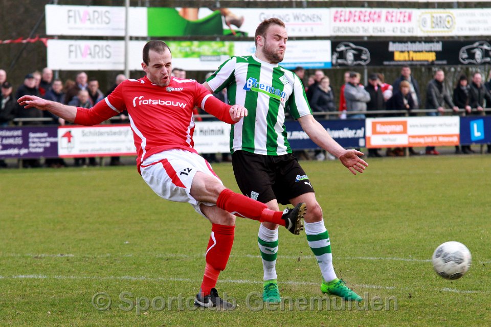 21 24-03-2018: Voetbal: AZSV v SC Genemuiden: Aalten/Joran Pot (l) of Genemuiden, Niek te Veluwe (r) of AZSV/ |