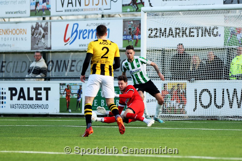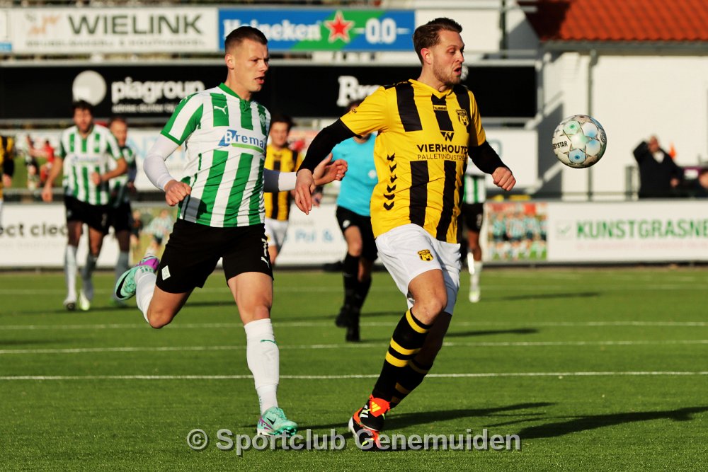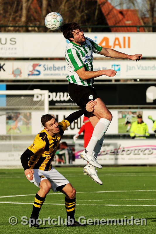 GENEMUIDEN, NETHERLANDS - JANUARI 27: Roland Bernt Baas (l) of DVS, Berwout Beimers (r) of Genemuiden. Competition match between Sportclub Genemuiden vs DVS '33…