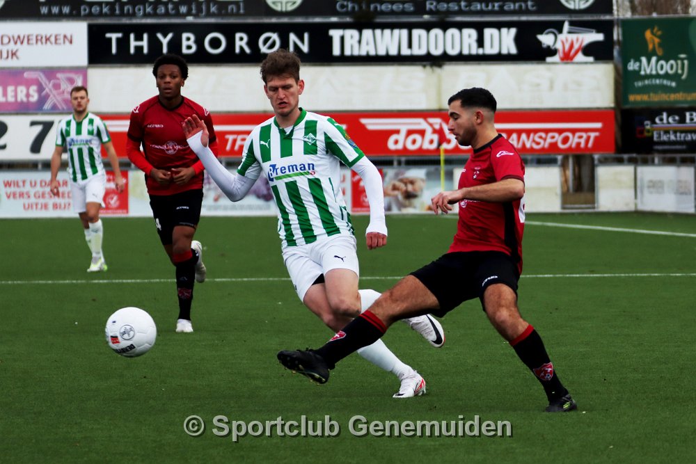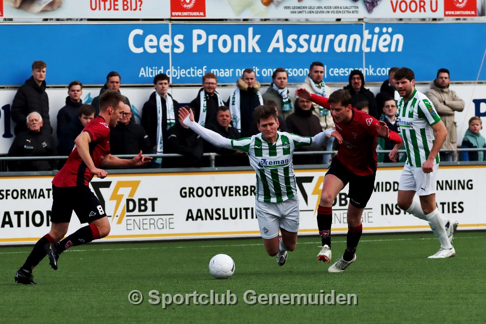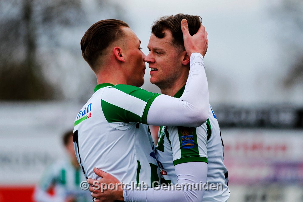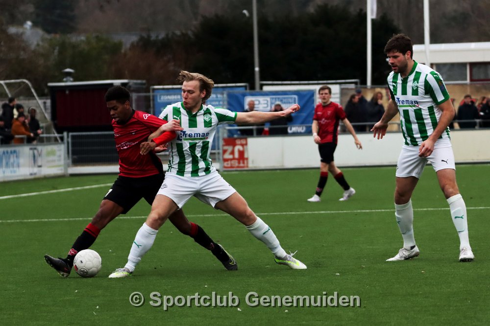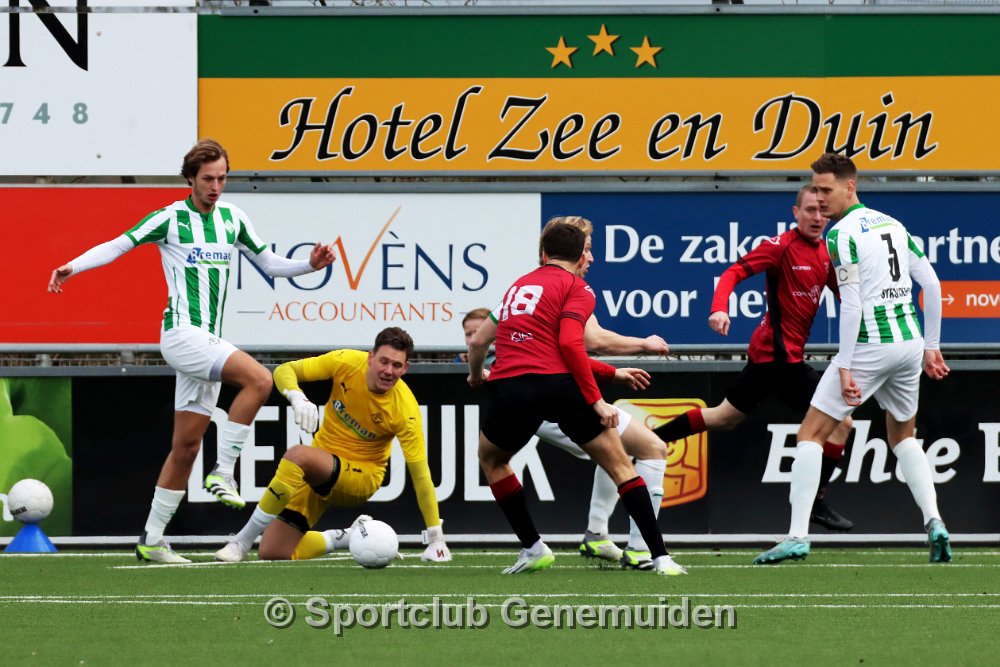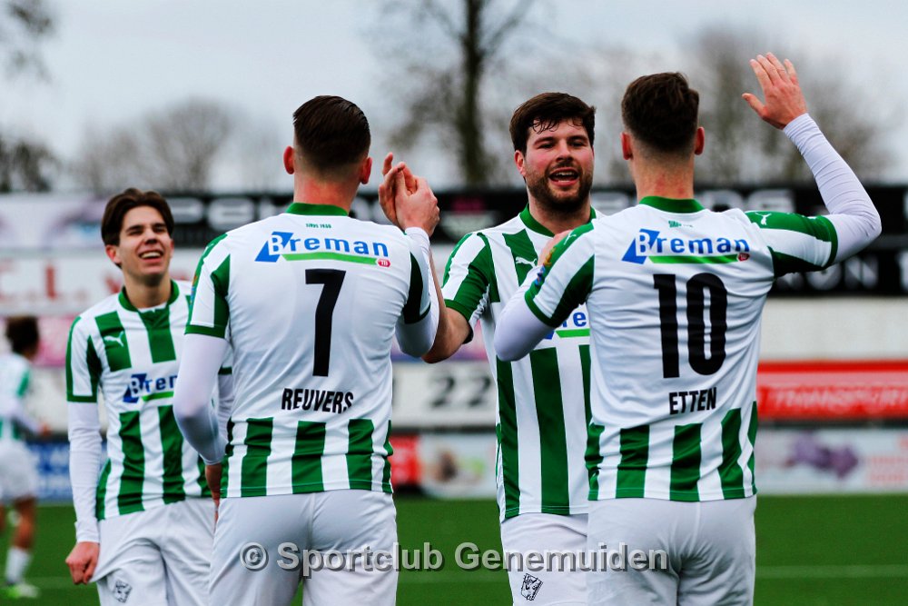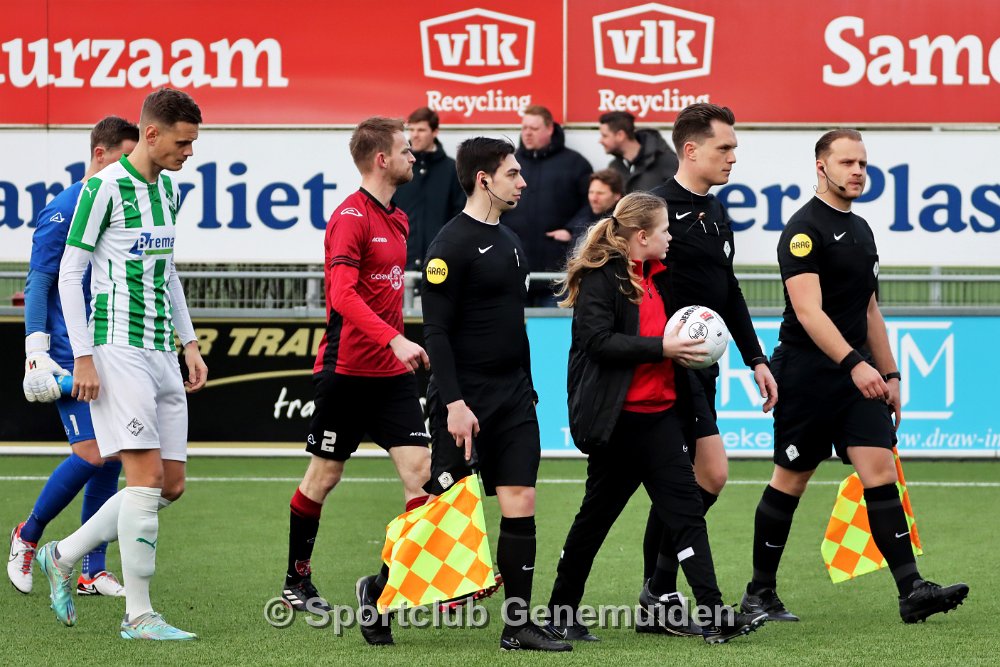 GENEMUIDEN, NETHERLANDS - FEBRUARI 24 2024: Team of Genemuiden. Competition match between FC Rijnvogels vs Sportclub Genemuiden at Sportpark de Kooltuin on 24…