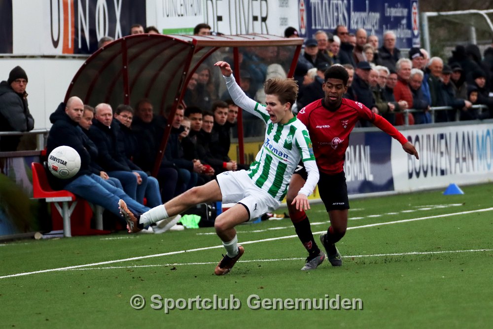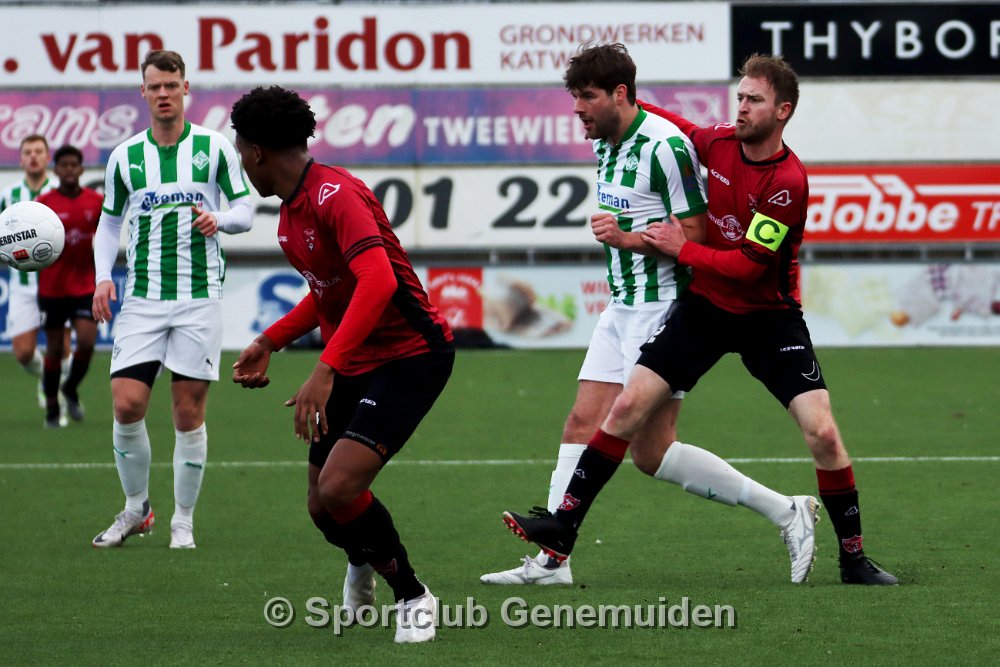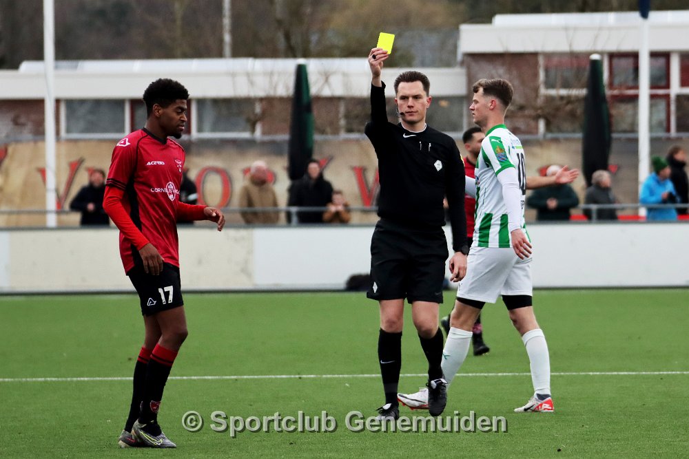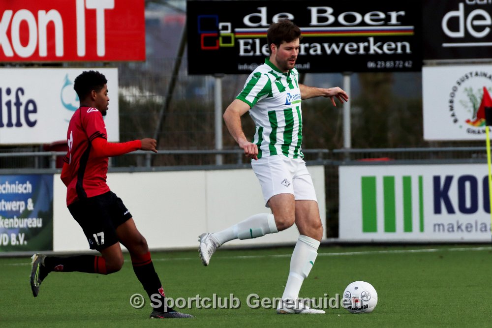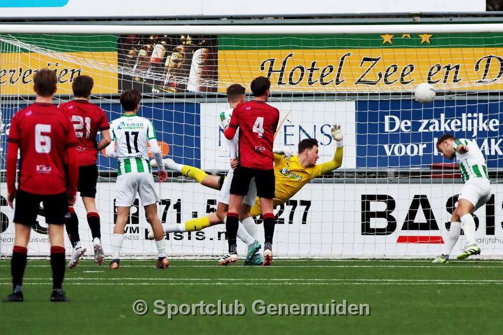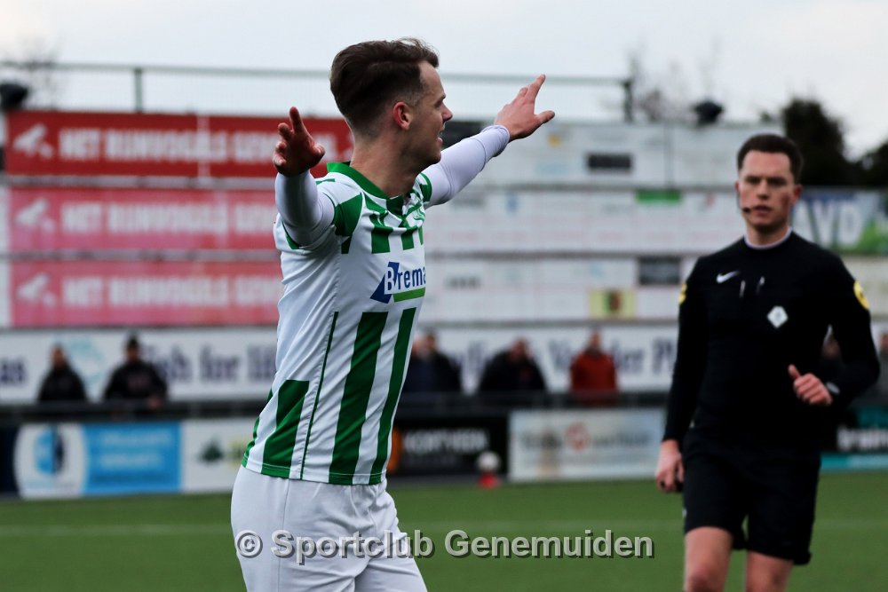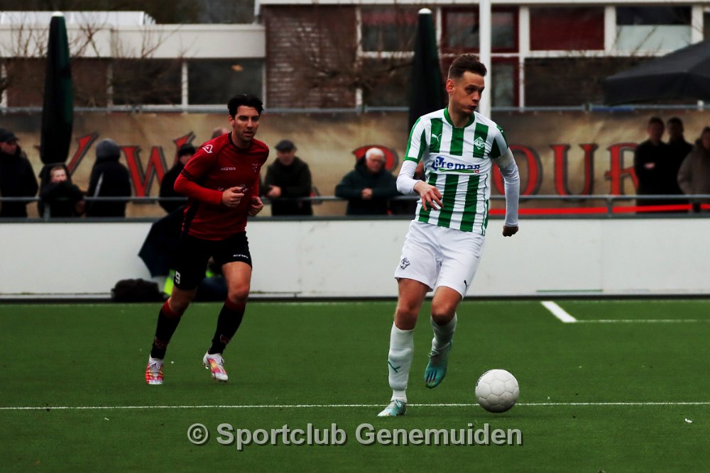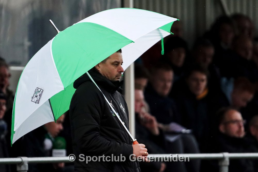 GENEMUIDEN, NETHERLANDS - FEBRUARI 24 2024: Team of Genemuiden. Competition match between FC Rijnvogels vs Sportclub Genemuiden at Sportpark de Kooltuin on 24…