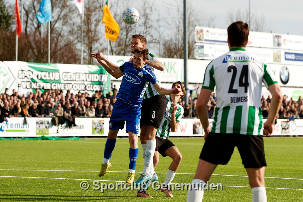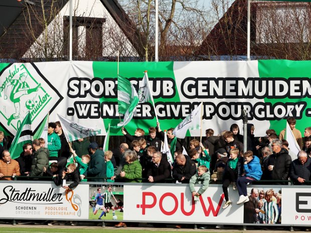 GENEMUIDEN, NETHERLANDS - MARCH 2 2024: Competition match between Sportclub Genemuiden vs IJsselmeervogels at Sportcomplex de Wetering on 2 march 2024 in…