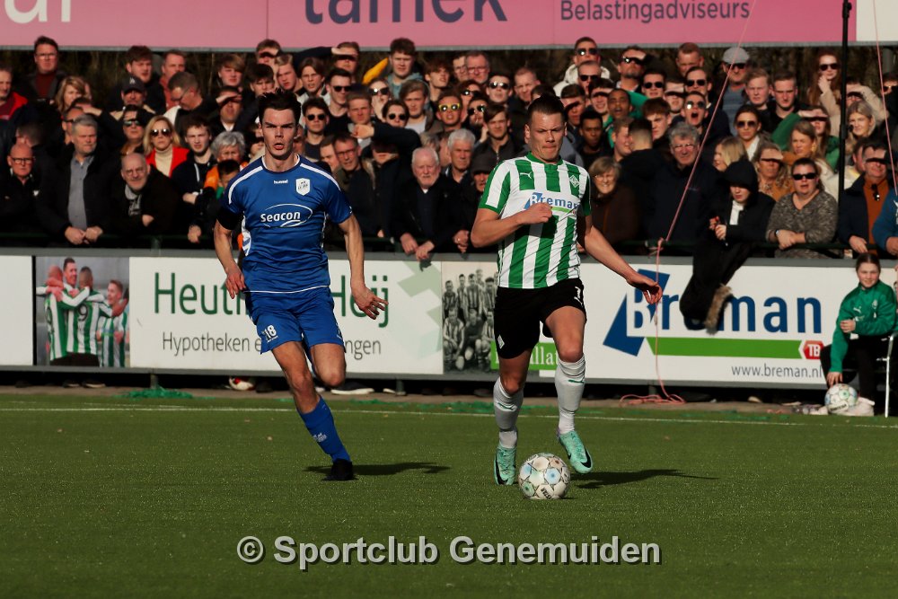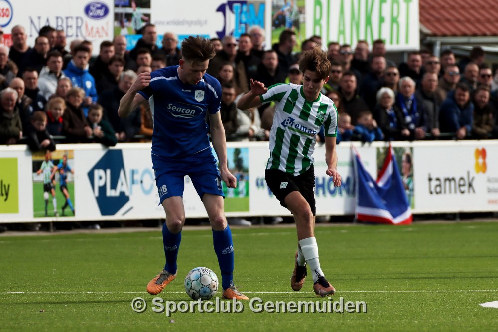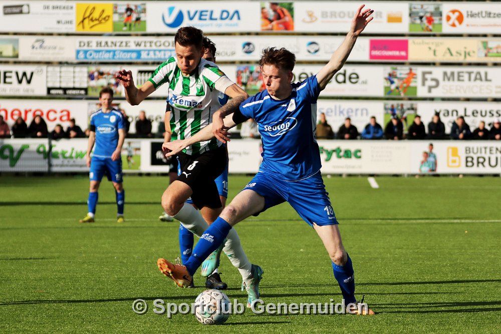GENEMUIDEN, NETHERLANDS - MARCH 2 2024: Rens van benthem (l) of Genemuiden, Lucas Tol (r) of Urk. Competition match between Sportclub Genemuiden vs…