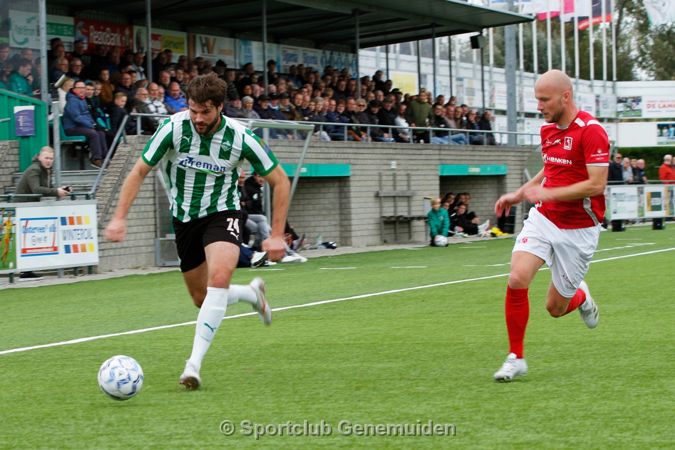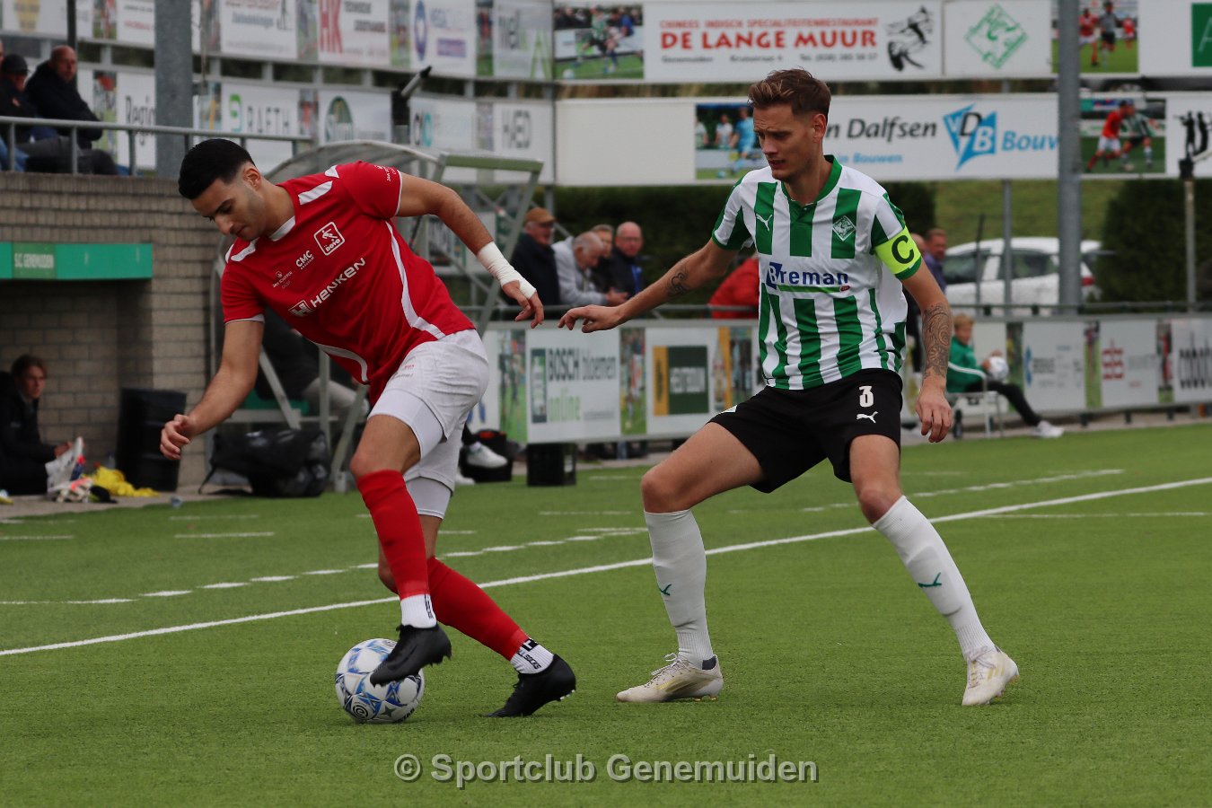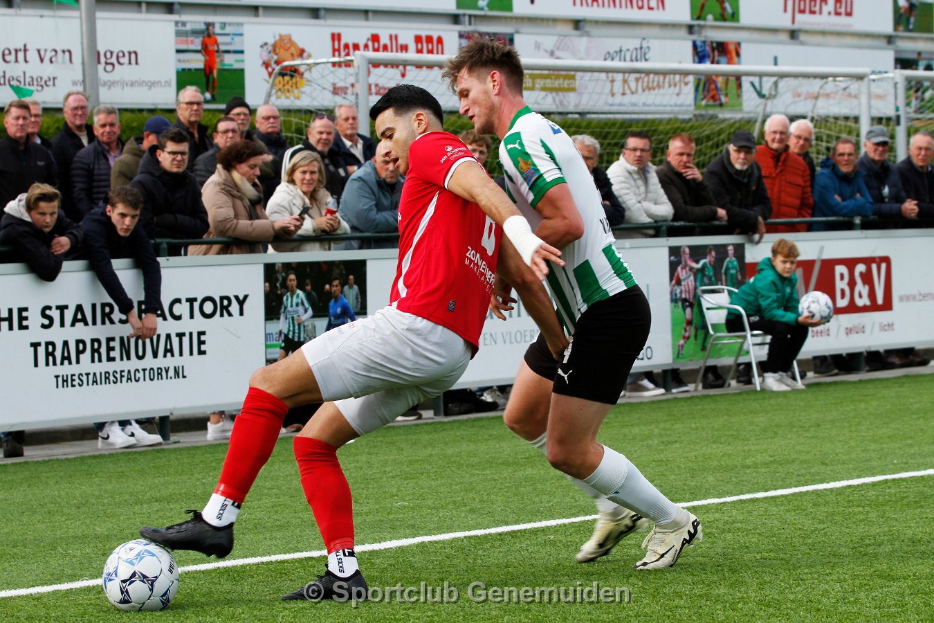 GENEMUIDEN, NETHERLANDS - OCTOBER 12: Nadir Achahbar (l) of DOVO, Rens van Benthem (r) of Genemuiden. Competition match between SC Genemuiden vs DOVO at…