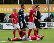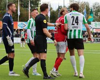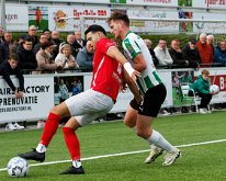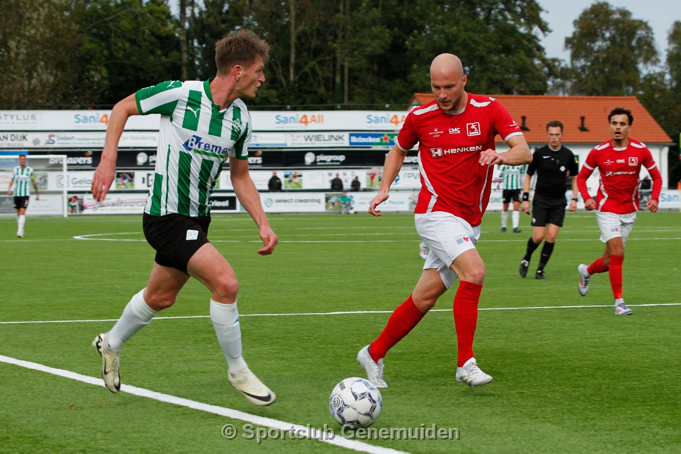 GENEMUIDEN, NETHERLANDS - OCTOBER 12: Rens van Benthem (l) of Genemuiden, Nick de Bondt (r) of DOVO. Competition match between SC Genemuiden vs DOVO at…