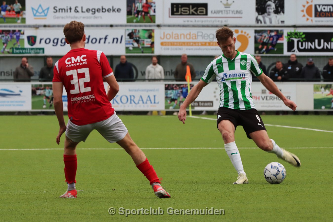 GENEMUIDEN, NETHERLANDS - OCTOBER 12: Berwout Beimers (l) of Genemuiden, Vita Nova Vormgoor (r) of DOVO. Competition match between SC Genemuiden vs DOVO at…