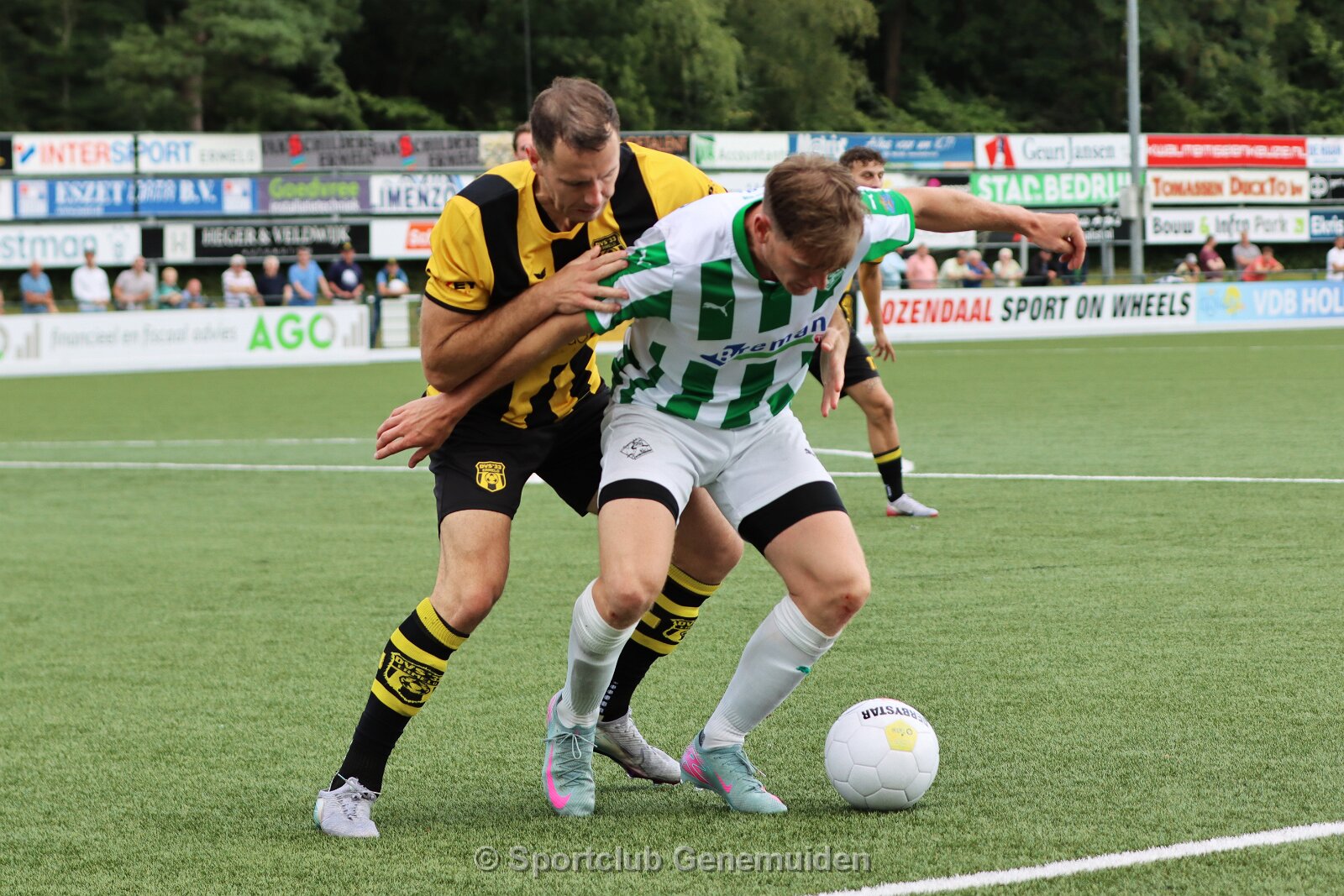 ERMELO, NETHERLANDS - AUGUST 16, 2025: Martijn Eenkhoorn (l) of Genemuiden, Ian van Otterlo (r) of DVS. Competition match between DVS´33 vs SC Genemuiden at…