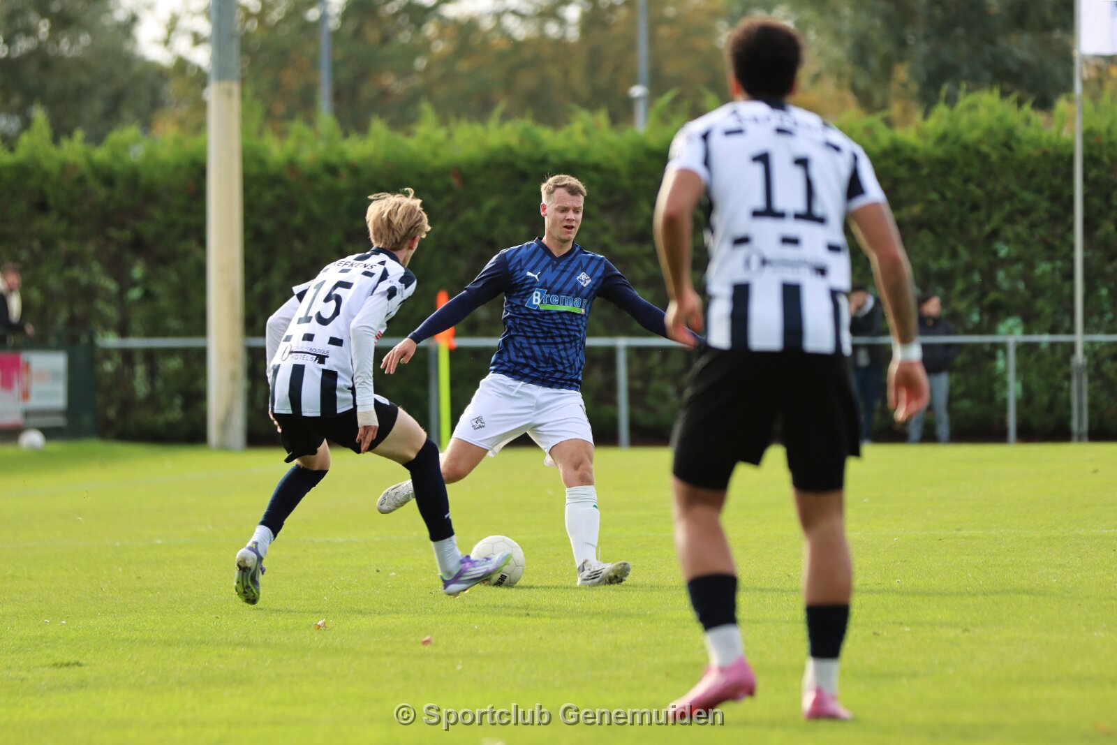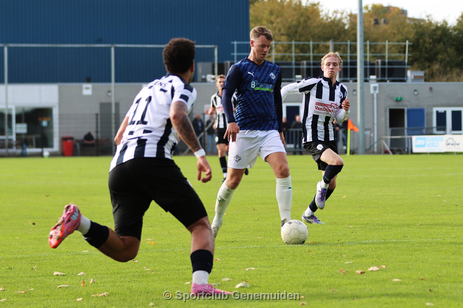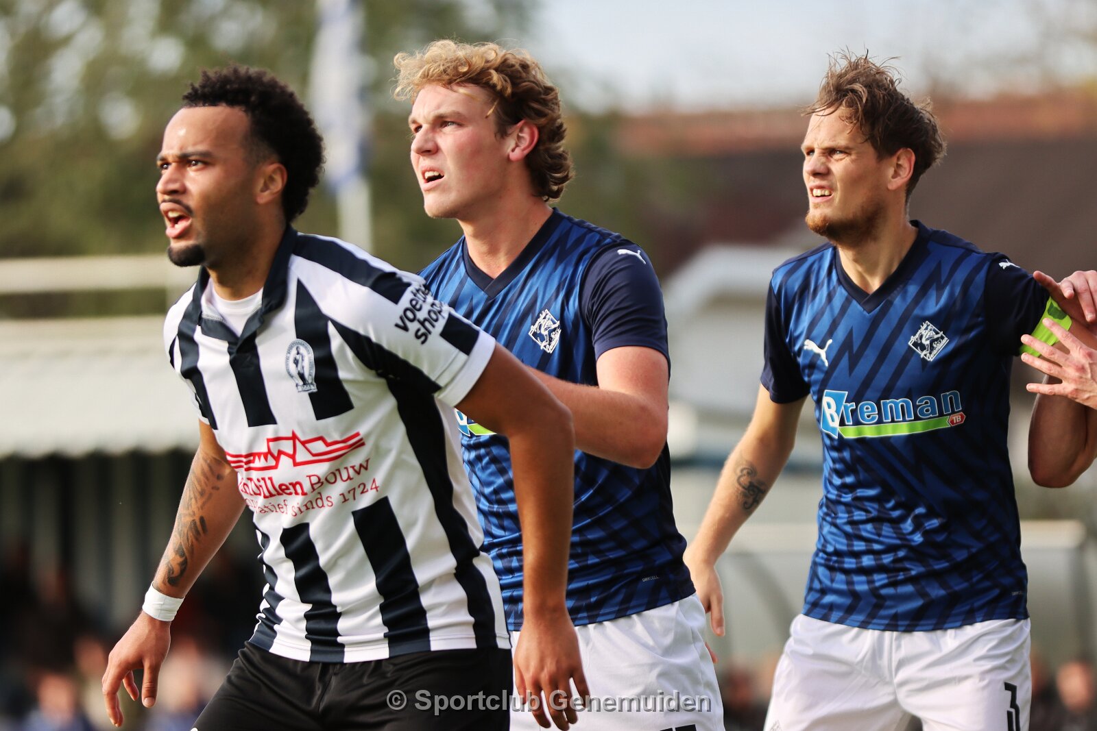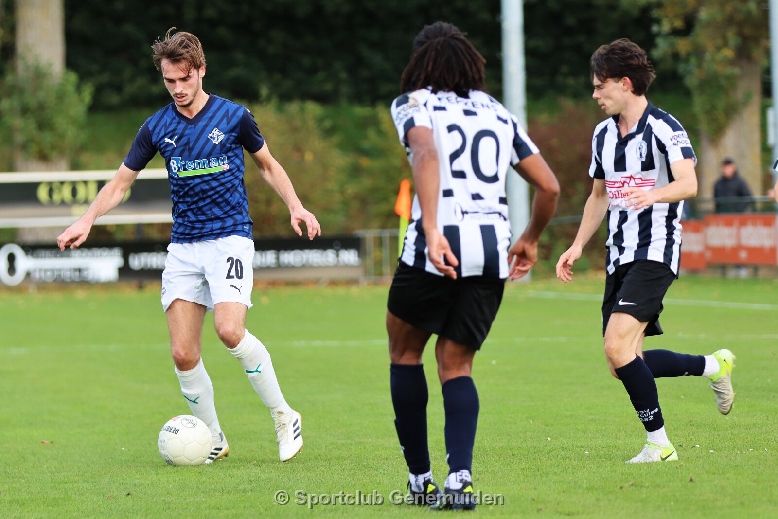 UTRECHT, NETHERLANDS - OKTOBER 18: Olivier van Eldik (l) of Hercules, Berwout Beimers (m) of Genemuiden, Nathan Bijl (r) of Hercules. Competition match between…