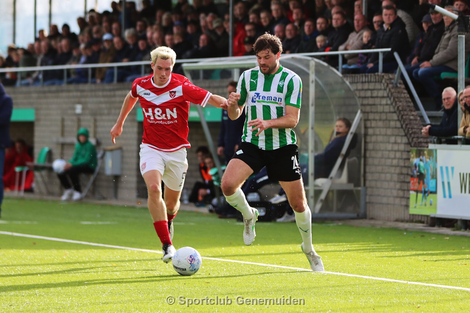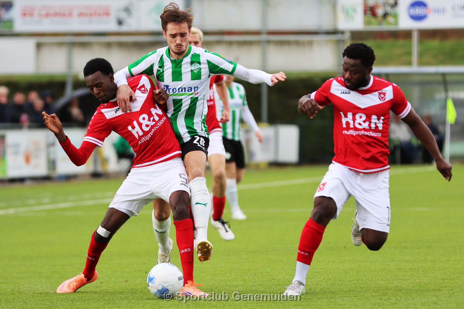 GENEMUIDEN, NETHERLANDS - OKTOBER 25: Competition match between SC Genemuiden vs Harkemase Boys at Sports complex “the Wetering” on oktober 25, 2025 in…
