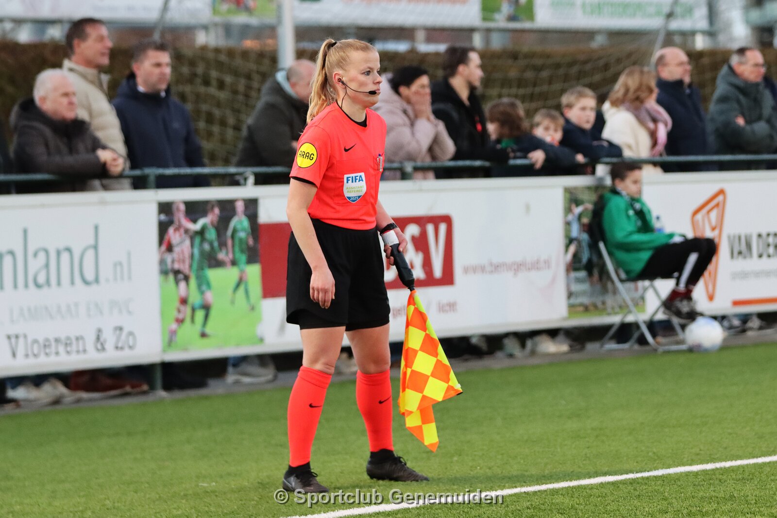 GENEMUIDEN, NETHERLANDS - DECEMBER 13, 2025: Ass. Ref. Martina Boer. Competition match between SC Genemuiden vs v.v. Hoogeveen at Sports complex “the Wetering”…