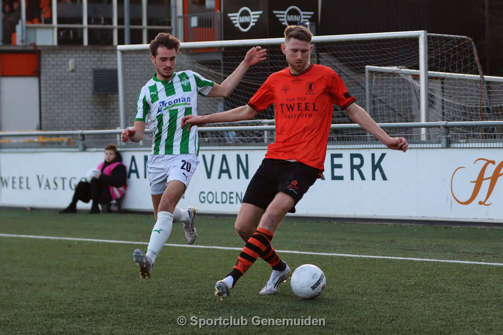 NIJKERK, NETHERLANDS - JANUARY 17, 2026: Raymond Huizing (l) of Nijkerk, Berwout Beimers (r) of Genemuiden. Competition match between Sparta Nijkerk vs SC…