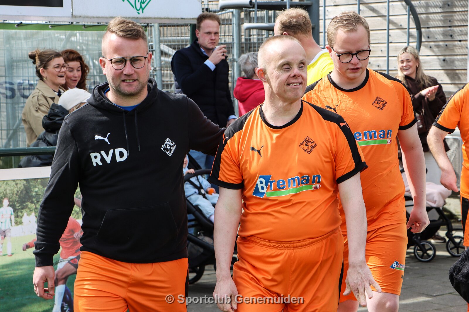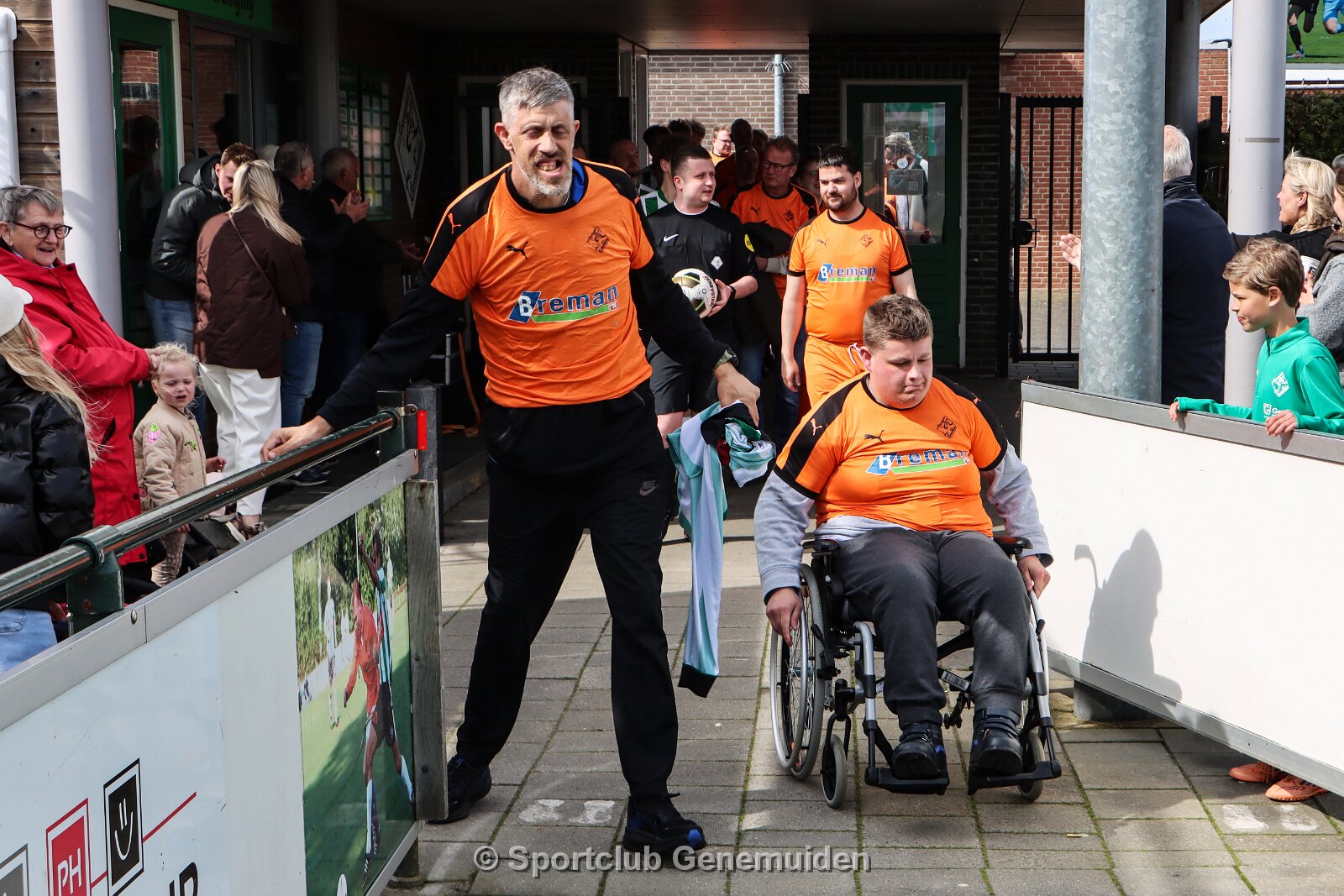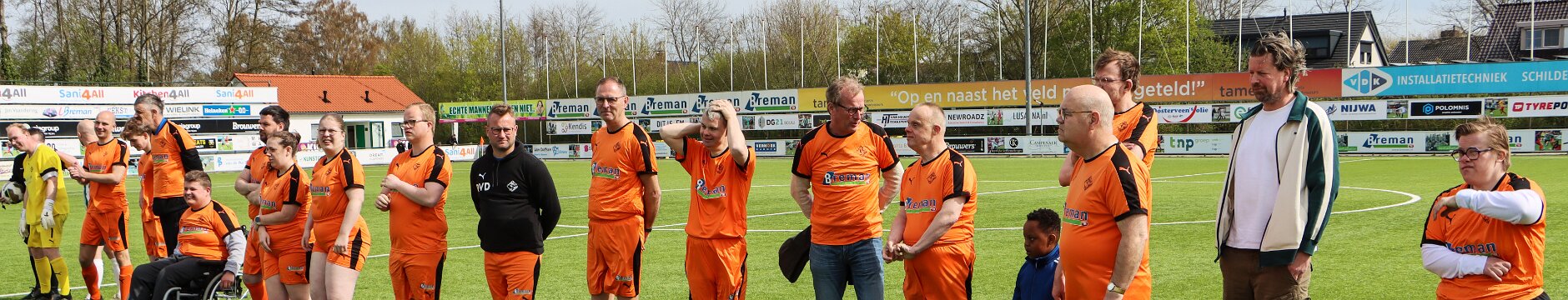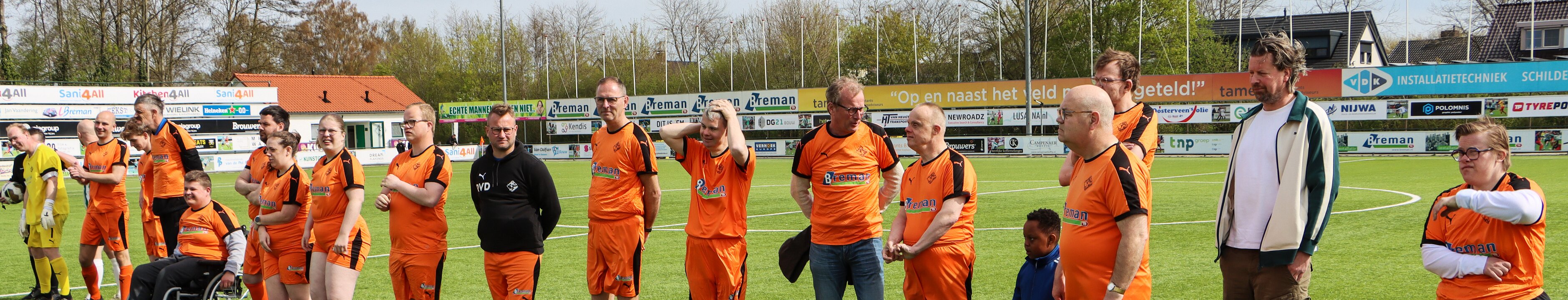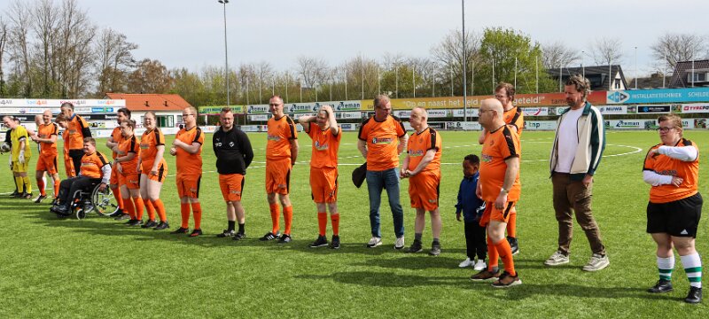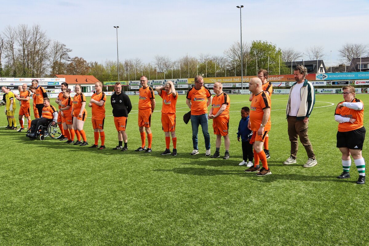 Vriendschappelijk treffen tussen Sportclub Genemuiden 5 tegen het All Stars team, (mensen met een beperking), op sportpark de Wetering te Genemuiden.