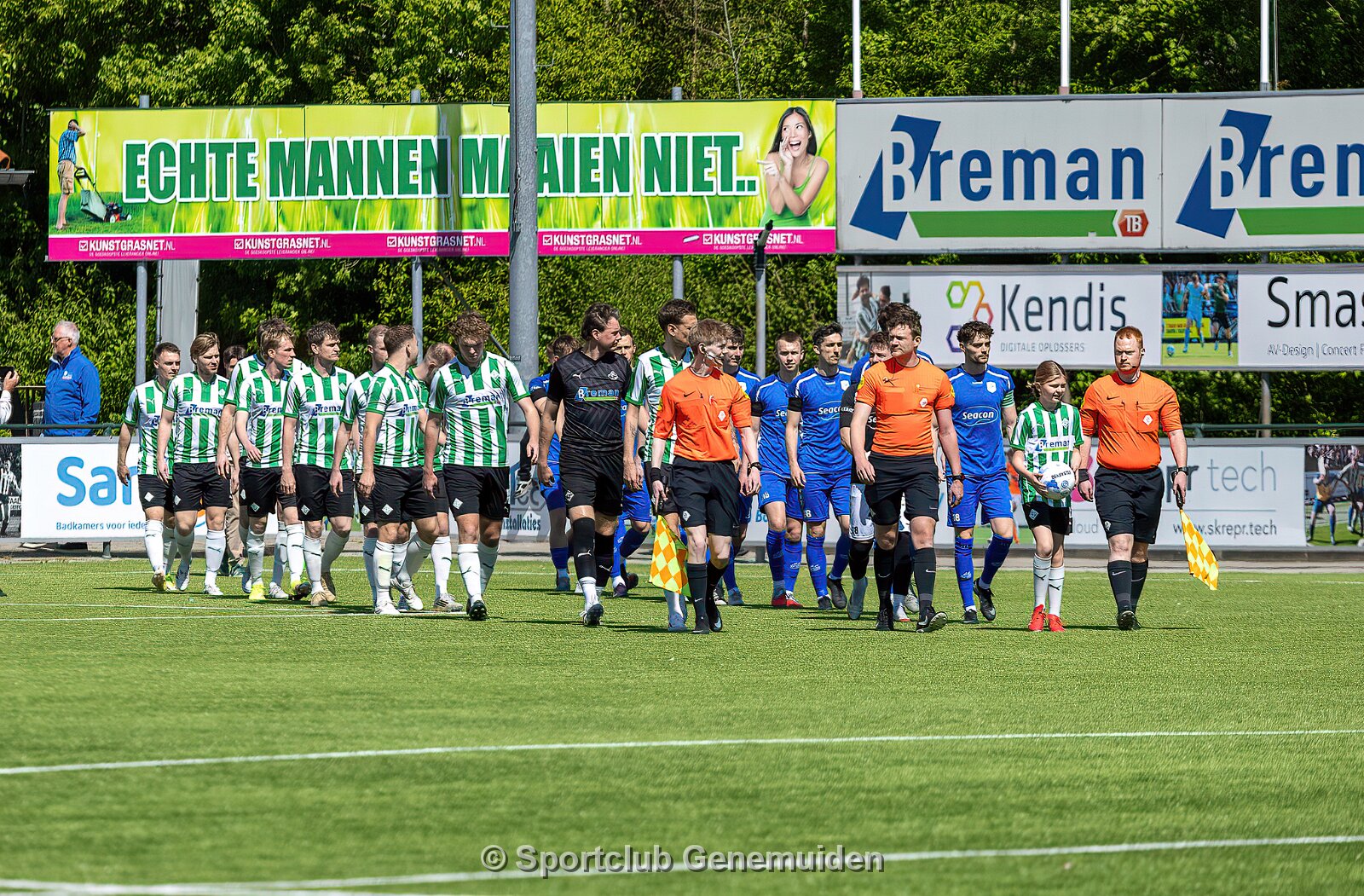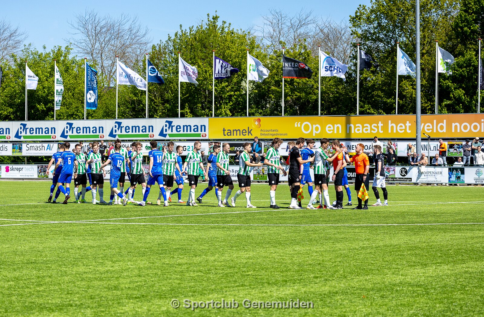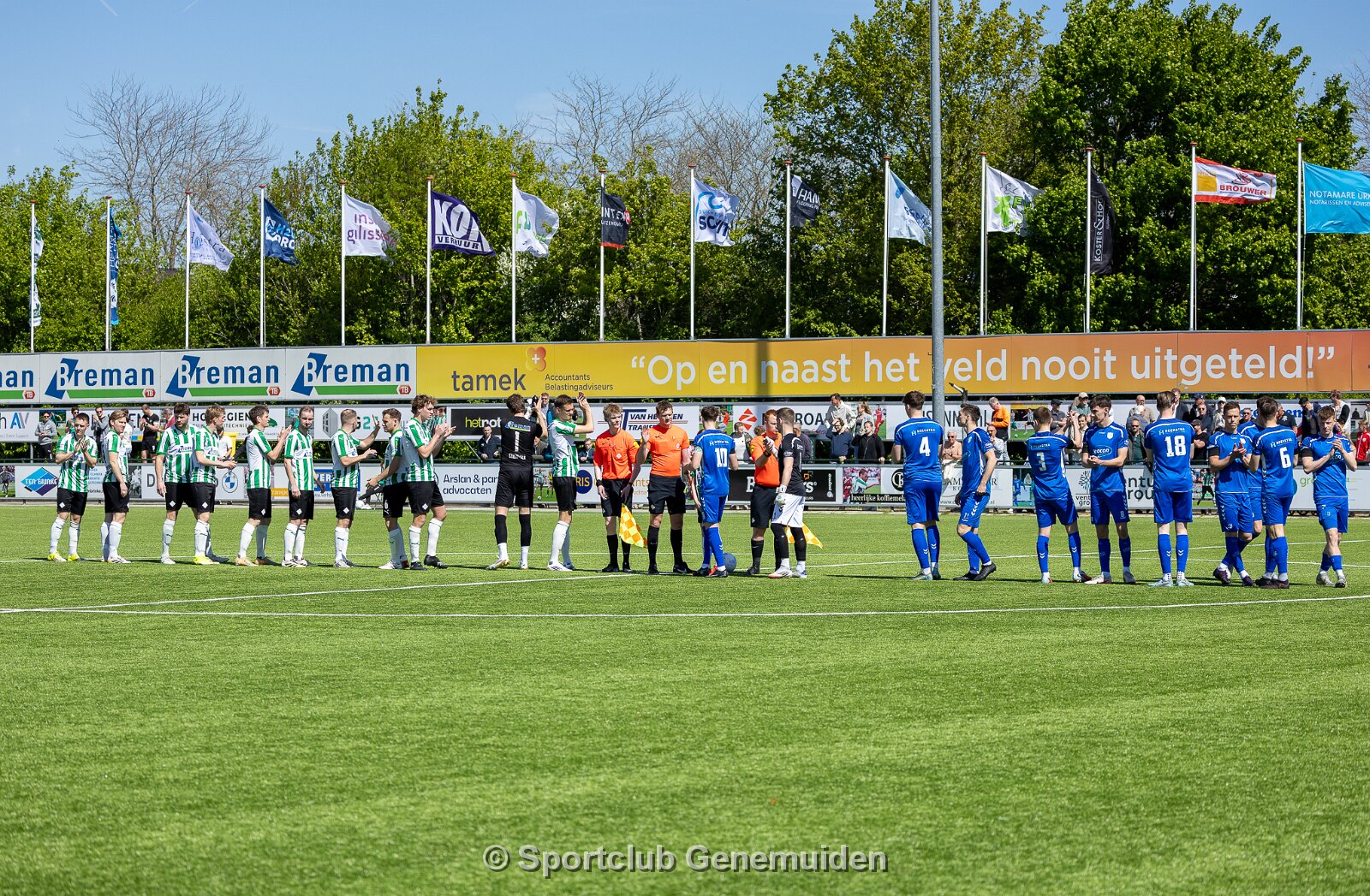 GENEMUIDEN, NETHERLANDS - APRIL 25: Team of Genemuiden. competition match between SC Genemuiden vs SV Urk at Sports complex “the Wetering” on april 25, 2026 in…
